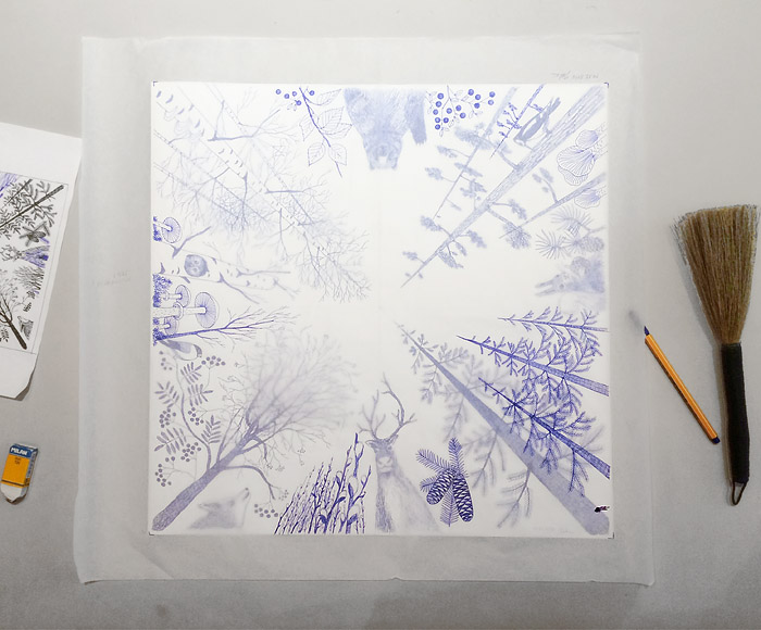 Designing of the Finnish Forest scarf. Drawigns: Johan Olin.
